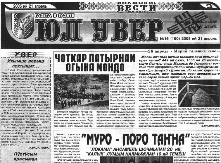 Издатель : Йылмым, литературым да историйым научнын шымлыше В.М. Васильев л меш марий институт
